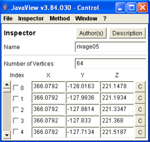 Geometric information about the points in the point set. If you change a coordinate, you must type Enter to activate the change.