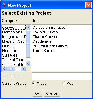 new geometries and displays.Open a dialog where you can choose one of the precompiled projects, each helping to perform a certain task.