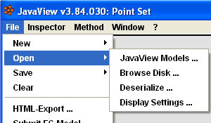 geometries and displays. (description)Load geometries/scenes from the JavaView Collection or geometries/scenes and display settings from hard disk. (description)