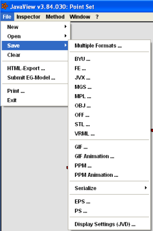 Save geometry or display as a Java object. This is not compatible between different versions of JavaView!