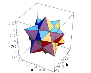 al = Graphics3D[Stellate[Dodecahedron[]], Axes -> True, AxesLabel -> {"a", "b", "c"}] Show[al] In[2]:= JavaView[al] |
