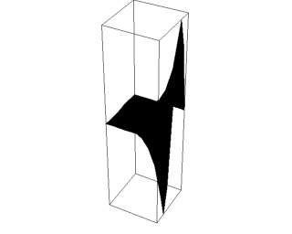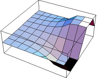 Here we see already an automatic feature of Mathematica: It allways tries to scale the SurfaceGraphics bounding box to x : y : z = 1 : 1 : 0.4 and cuts all z values, which exceed the z bounds of this box. JavaView does not scale the coordinate axes different and does not support such an automatic clipping.![]() |