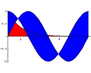<< Graphics`FilledPlot` In[2]:= fp = FilledPlot[{Exp[-x], Cos[x], Sin[x]}, {x, 0, 2 Pi}, Fills -> {{{1, Axis}, RGBColor[1, 0, 0]}, {{3, 2}, RGBColor[0, 0, 1]}}, Curves -> Front] In[3]:= JavaView[fp] |