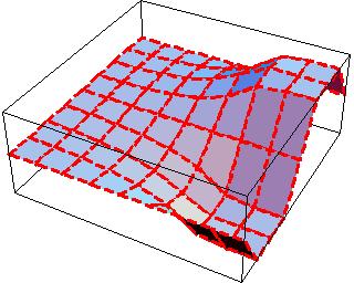 ms = SurfaceGraphics[Table[Sin[x]*Exp[y], {x, -Pi, Pi, Pi/4.}, {y, -E, E, E/4.}], MeshStyle -> {Thickness[0.01], RGBColor[1., 0., 0.], Dashing[{0.02, 0.02}]}]; Show[ms] In[2]:= JavaView[ms] |