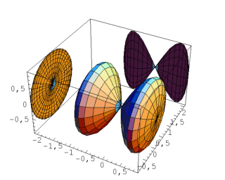 <<Graphics`Graphics3D` In[2]:= dbell = ParametricPlot3D[{Sin[t], Sin[2t] Sin[u], Sin[2t] Cos[u]}, {t, -Pi/2, Pi/2}, {u, 0, 2Pi}, Ticks -> None]; In[3]:= sa := Shadow[dbell, ZShadow -> False]; In[4]:= JavaView[sa] |