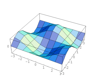 | Show the graph of a function over a rectangular planar domain. | In[1]:=