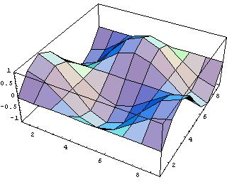 sg = SurfaceGraphics[Table[Sin[x]*Cos[y], {x, -Pi, Pi, Pi/4.}, {y, -Pi, Pi, Pi/4.}], Axes -> True]; In[2]:= JavaView[sg] |