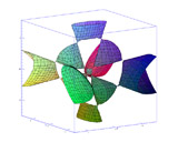 This level solver computes algebraic surfaces given as zero set of a polynomial function. By Richard Morris and JavaView. |